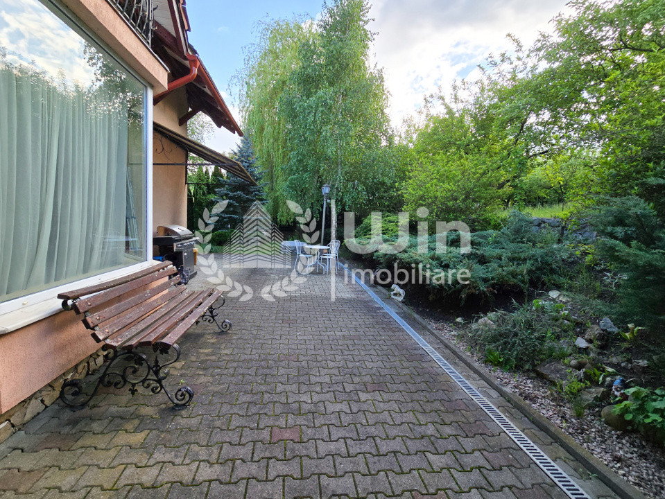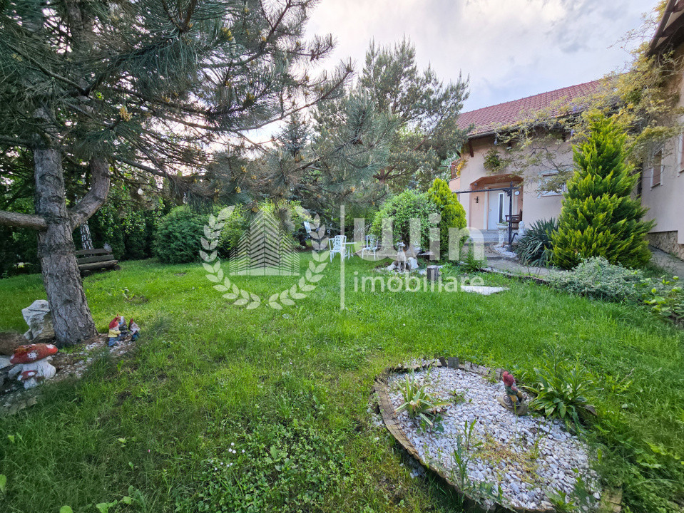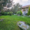 Casa beneficiaza de o grădina exterioara, înconjurată de un gard verde din brazi tuia, o fântână, o zonă dedicată barbeque.