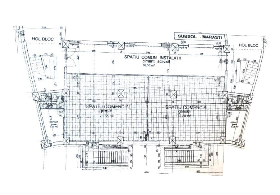 Situat la parterul unui demisolul unui imobil cu 10 etaje, spatiul dispune de o suprafata utila de 198mp impartit in doua spatii comerciale distincte.